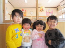 13日お別れ会を行いました。たんぽぽ組さんは2月末からお別れ会の練習してきましたが、当日もほどよい緊張感の中、お別れ会に参加しとっても立派な姿を見せてくれました。前に立つ保育士の目をしっかりと見てお返事をし、証書をもらう姿や修了の歌を大きな声で歌う姿をみると、とても感慨深いものがありました。 たんぽぽ組さんはいつも穏やかで仲良し、でもちょっぴり新しいことにチャレンジするときは緊張したり、慎重になったりすることが多いクラスでした。保育園で生活する中で困難にぶつかり、困ったとき、不安になったとき、泣いてしまったときもあったね。そんな時は、保育士に気持ちを受け止めてもらい、友だちに慰められて一つ一つ乗り越えてきました。年度の後半になるとそんな姿も少しずつ減り、自分でどうしたらよいか考えたり、「こうしてみるといいんじゃない?」と友だちに提案したりされたりする姿が見られるようになりました。そして、たくさんの経験がみんなの自信になったね。 4月からはみんな新しい環境になります。初めてのことに戸惑うことも多いかもしれませんが、持ち前の明るく穏やかなみんなならきっと大丈夫!優しい先生や新しいお友だちと楽しい園生活を送れるように、豆の木保育園の先生たちで応援しています。豆の木保育園のことを思い出したときは、いつでも遊びに来てくださいね。たんぽぽ組さん、いままで本当にありがとう! もも組さんとちゅうりっぷ組さんは、手あそびでたんぽぽ組さんをお祝いしてくれました。アルバムにアップしてあります。