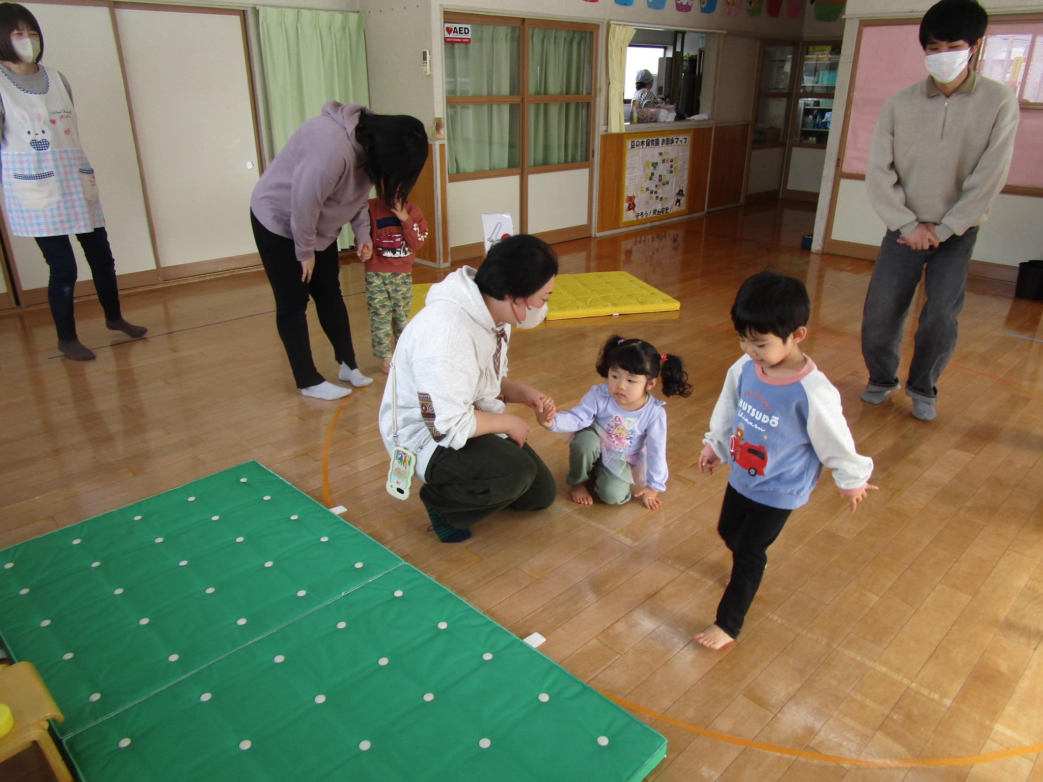 22日にたんぽぽ組の保育参観を行いました。残念ながら、お休みのお友だちがおり全員での参加は叶わなかったのですが、お父さんやお母さんと保育園で遊べる日だよ!とお話していたので、ニコニコ登園してくれたたんぽぽ組さんでした。保護者の方には、お忙しい中ご参加いただきありがとうございました。